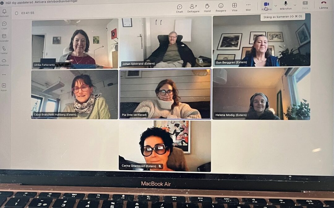Vi sitter alla nio utspridda över Sverige. Det är vår andra sammankomst med den nytillträdda styrelsen och det blir tydligt hur utspridda vi är. På lunchen är det någon som promenerar i ett vinterklätt landskap medan det i Åmål där jag sitter fortfarande bara är ett tunt lager med flosockerliknande snö.